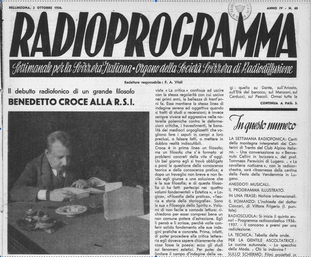 Per l’occasione il Radioprogramma pubblicò inoltre una pagina dedicata all’opera crociana.