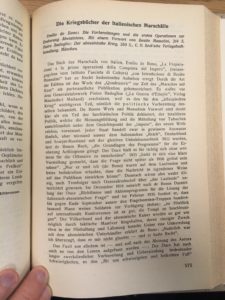 Si tratta della recensione a due volumi: il primo è Die Vorbereitung und die ersten Operationen zur Eroberung Abessiniens di Emilio de Bono, con una prefazione di Benito Mussolini; il secondo Der abessinische Krieg di Pietro Badoglio, entrambi pubblicati da C. H. Beck’sche Verlagsbuchhandlung, Monaco.